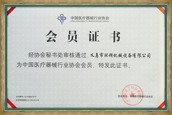 中國醫(yī)療器械行業(yè)協(xié)會會員證書
